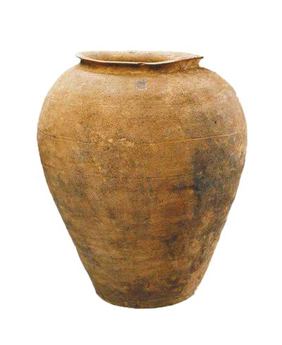 古代瓮的存世量很大,但先秦瓮比较少见,比如现藏于温州市东瓯国历史陈列馆的战国印纹硬陶瓮,高约52厘米,口径24.9厘米,底径21.7厘米,保存完整。此器侈口、卷沿、短颈、圆肩、深腹,腹下敛收,平底。瓮颈部拍印斜方格纹,间饰篦划纹,纹饰较模糊;器身遍饰斜方格纹、回字形方格纹和米格纹,间饰篦划纹,纹饰清晰;肩部塑贴对称锚形附加堆纹。瓮材质为夹砂红陶,胎质坚硬,器形硕大,制作规整,装饰繁密,是南方地区较少见的战国大型陶容器。