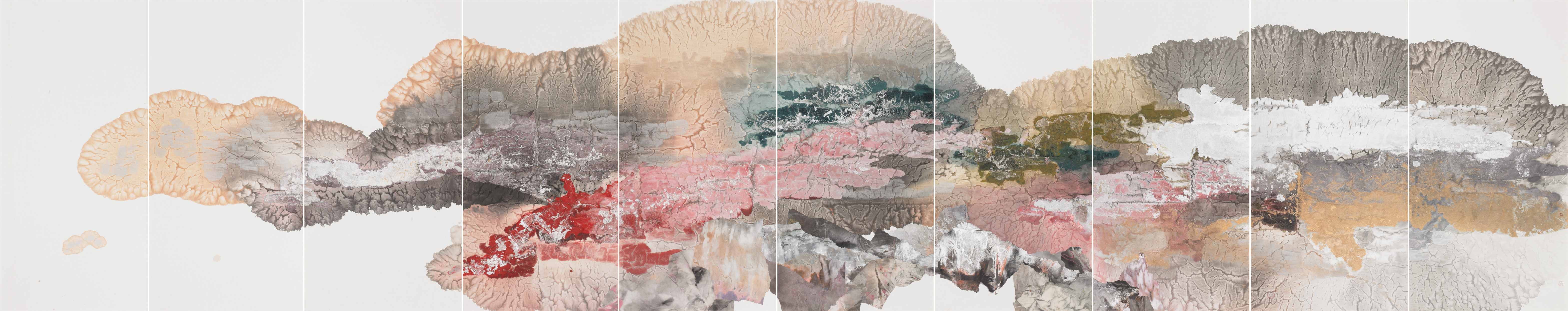 胡伟,《祥云》,140×700 cm,宣纸、墨、矿物和植物颜料