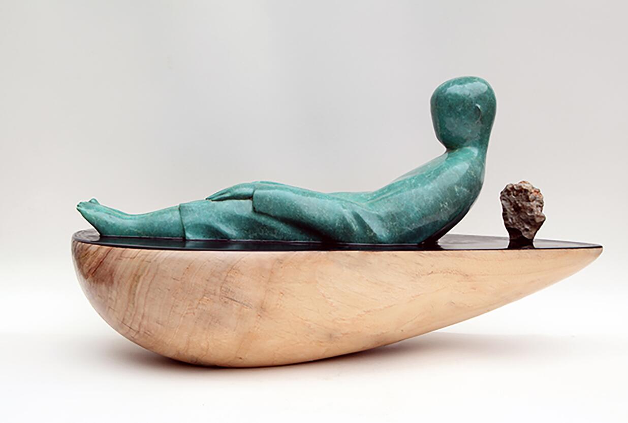 吴永平,《一种闲适》,66 ×33 ×35cm,青铜、木、石头