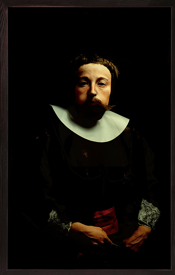 有一部分作品无疑是对伦勃朗的致敬。杰夫·昆斯的《凝视球(伦勃朗自画像)》被特意放置在看不到原作的地方。格伦·布朗(Glenn Brown)和辛迪·舍曼则模仿了一些古典大师的神态和穿着。布朗的肖像效仿了格列柯,而戴着面具的舍曼则同样穿梭了时间的长河。美国画家纳撒尼尔·玛丽·奎因(Nathaniel Mary Quinn)作于2019年的自画像《伦勃朗之后》(After Rembrandt)则挪用了伦勃朗的皮毛外套和衬衫。不过,这一切说到底都不如伦勃朗。毕竟,在当代寻找能够与伦勃朗抗衡的画家是行不通的,因为不存在这样的人。不知何故,他的自画像有一种现实感,仿佛就在此时此地。这真是一道奇妙的谜题。