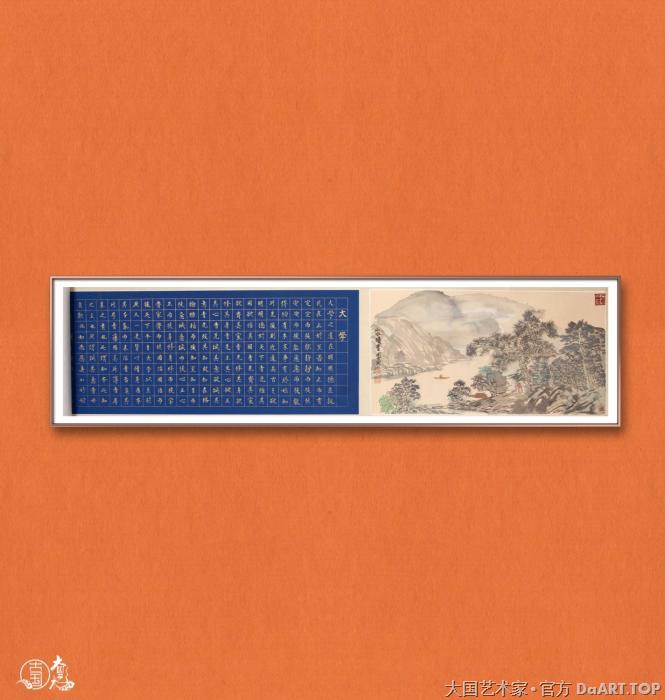 小楷作品如《心经》精研珍贵,质如和璧隋珠,要么收存于实力藏家,要么高阁于国家典藏。他历练书法痴之迷之,全因爱之为甚!大爱必深研,厚积必薄发。经过临池不辍的心追手临,他完全觉悟了书道要义,把楷书真法秘籍解锁得一览无余,所以其楷书创作可见上下非齐平、左右非方整,高低相倾,前后相随,写得完全不是算子之状,而是万千变化的天质自然。他的楷书非常强调笔墨的书写效果,啄笔快利自如,勒笔急去缓加,侧笔走势流畅,努笔直作曲意,八法之妙挥洒自如,唐楷正宗真实不虚!