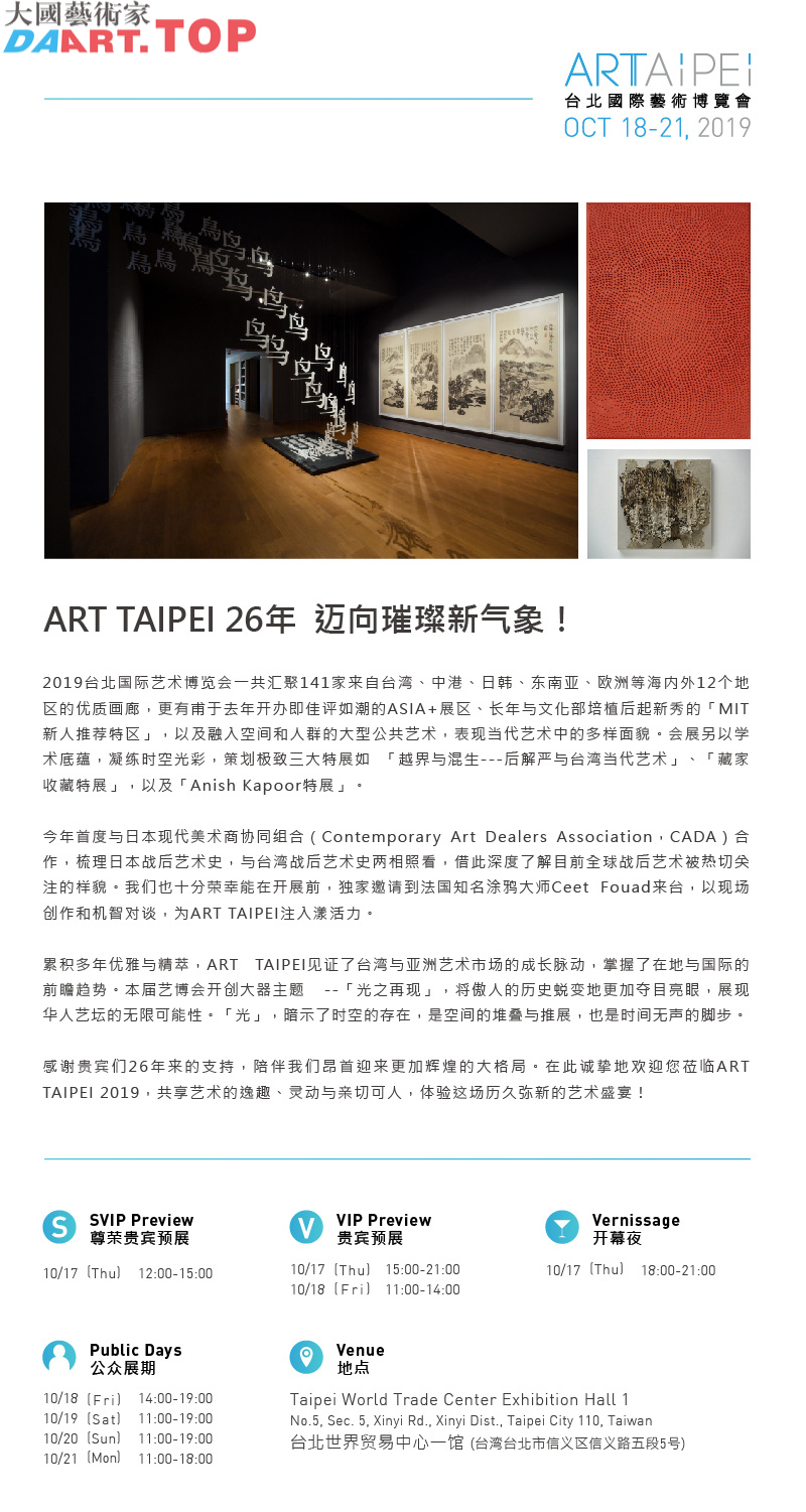 2019 ART TAIPEI台北國際藝術博覽會即將登場