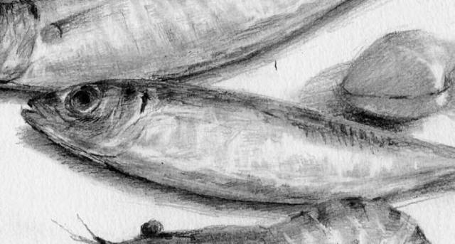 3. 竹荚鱼银色的质感需用硬的铅笔来表达。