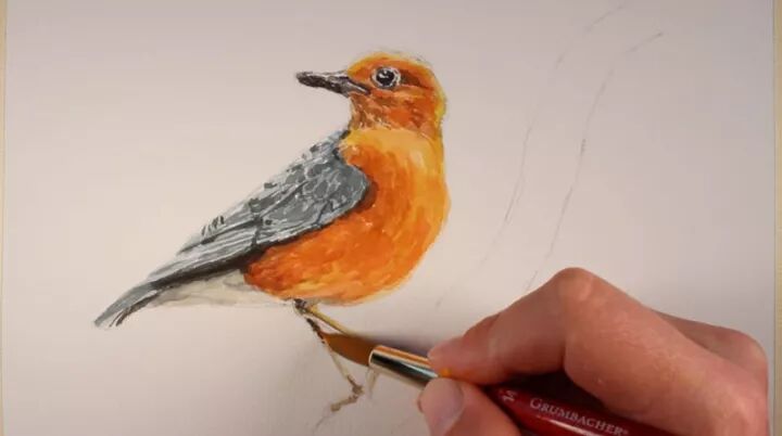 每层的颜色逐渐变暗。深色和浅色的关系开始应用于鸟类头部和胸部的形状和质地。在这个阶段,层仍然是相当轻和透明的。