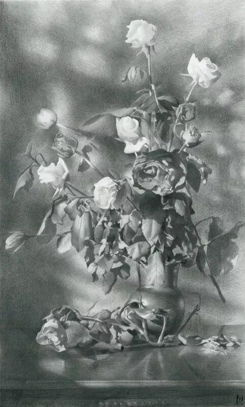 他的图形和绘画作品技术广泛,但他最喜欢的是铅笔画,诸如景观、肖像、裸体等体裁以及文学历史书籍插图等。他的素描作品笔法细腻,情感真实,造型准确,画面生动感人。
