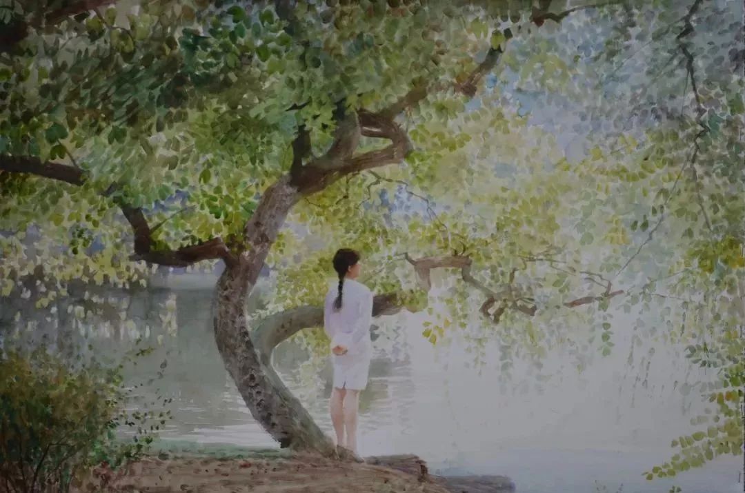 当时在增城县文化馆的一个朋友家中,黄中羊找到一本《印象派绘画史》,如获至宝。莫奈、毕莎罗、西斯莱等法国印像派画家当年也是受到排挤,走出巴黎,走出画室,到大自然里画画,这些故事深深激励了黄中羊。“田间地头里,我画日落、画日出,画远的山、画近的树,画农夫的肖像,锻炼了对色彩感的把握。”黄中羊回忆说。艰苦岁月的磨练,黄中羊的生命中与水彩画却结下了很深刻的联系。文革后,他报考广州美术学院,并顺利成为油画系研究生,师从郭绍纲、徐坚白、尹国良三位著名画家,从素描到造型、色彩,获得扎实训练,而他也一直没有放弃对水彩画的痴迷和执着探索。