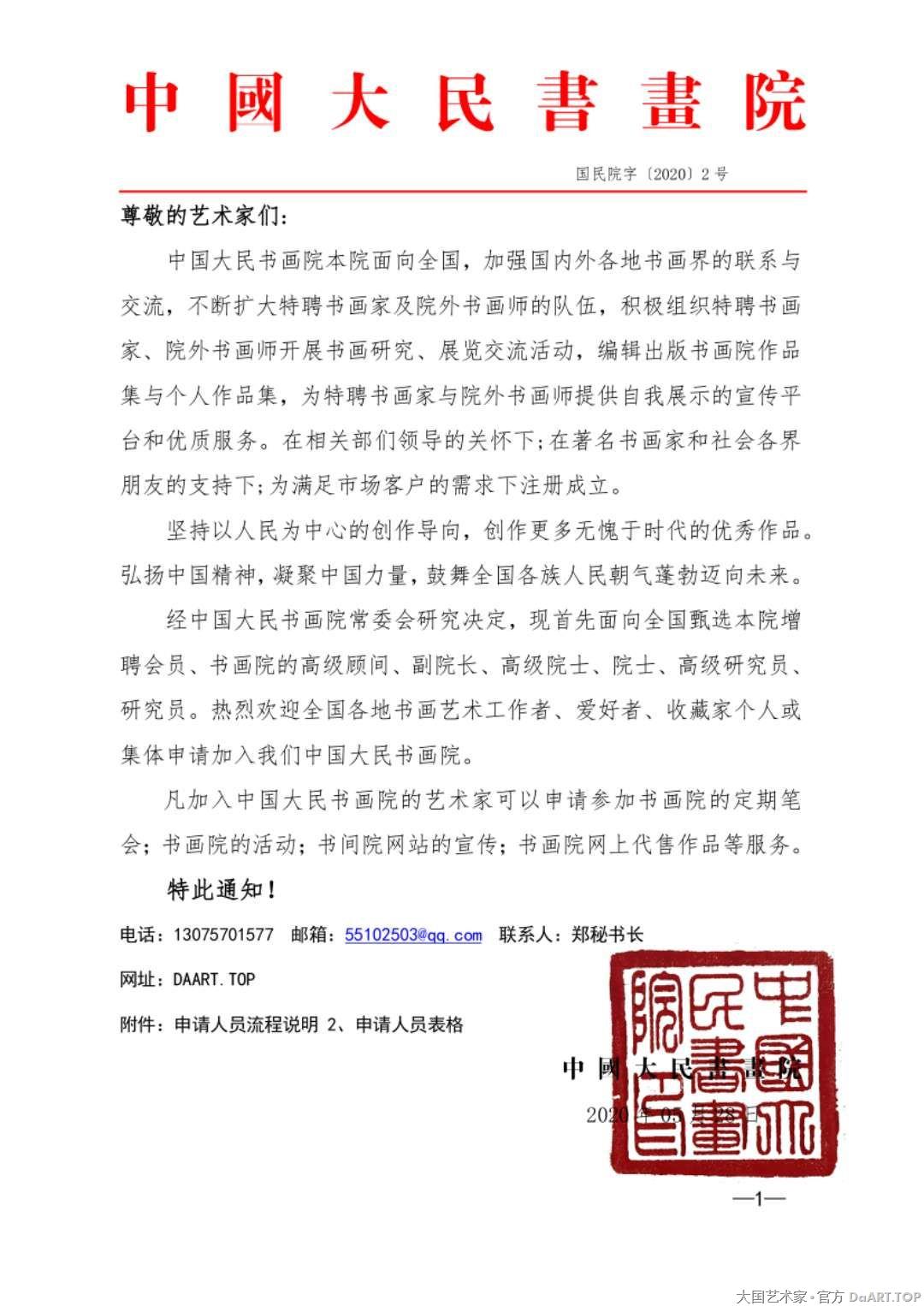 3、 书画院常务委员会领导审核通过后书画院秘书处给与通知。