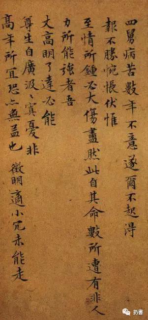 北京故宫博物院藏文徵明《致吴愈札》(图5),即其写给岳父的家书,以信中涉及内容的考订,应为文氏五十岁左右的作品。该信札所书小楷,在结构上有严谨修长与方整遒劲的两种体势,是文氏从师法唐欧阳询并转师晋王羲之《黄庭经》小楷的变化所致。清包世臣《艺舟双楫》内中谈到书法鉴定时说:“故凡得名迹,一望而知为何家者,字字察其用笔结体之故,或取晋意,或守唐法,而通篇意气归于本家者,真迹也。一望而知为何家之书,细求以本家所习前人法而不见者,仿书也。以此察之,百不失一。”这就是说,如文徵明写给其岳父的一封信札,出于尊敬长辈,一定用恭楷,又自然流露出所师法欧阳询或王羲之楷法的遗迹,但又形成自己书法的特点。按照包世臣总结的鉴定之法,以此札小楷来比鉴同为文氏五十岁左右的《湘君图》上所书小楷,我们能看到的只是“一望而知为何家书”。