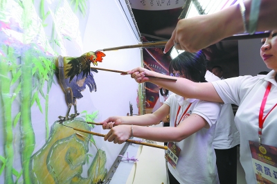观众现场体验皮影戏