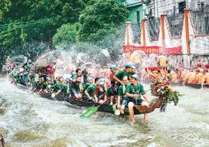 摘要: 近日,著名侨乡广东省佛山市顺德区龙潭村热闹非凡。上百条龙舟船汇集在龙母庙前河道,游龙戏水,庆祝“龙母诞”。